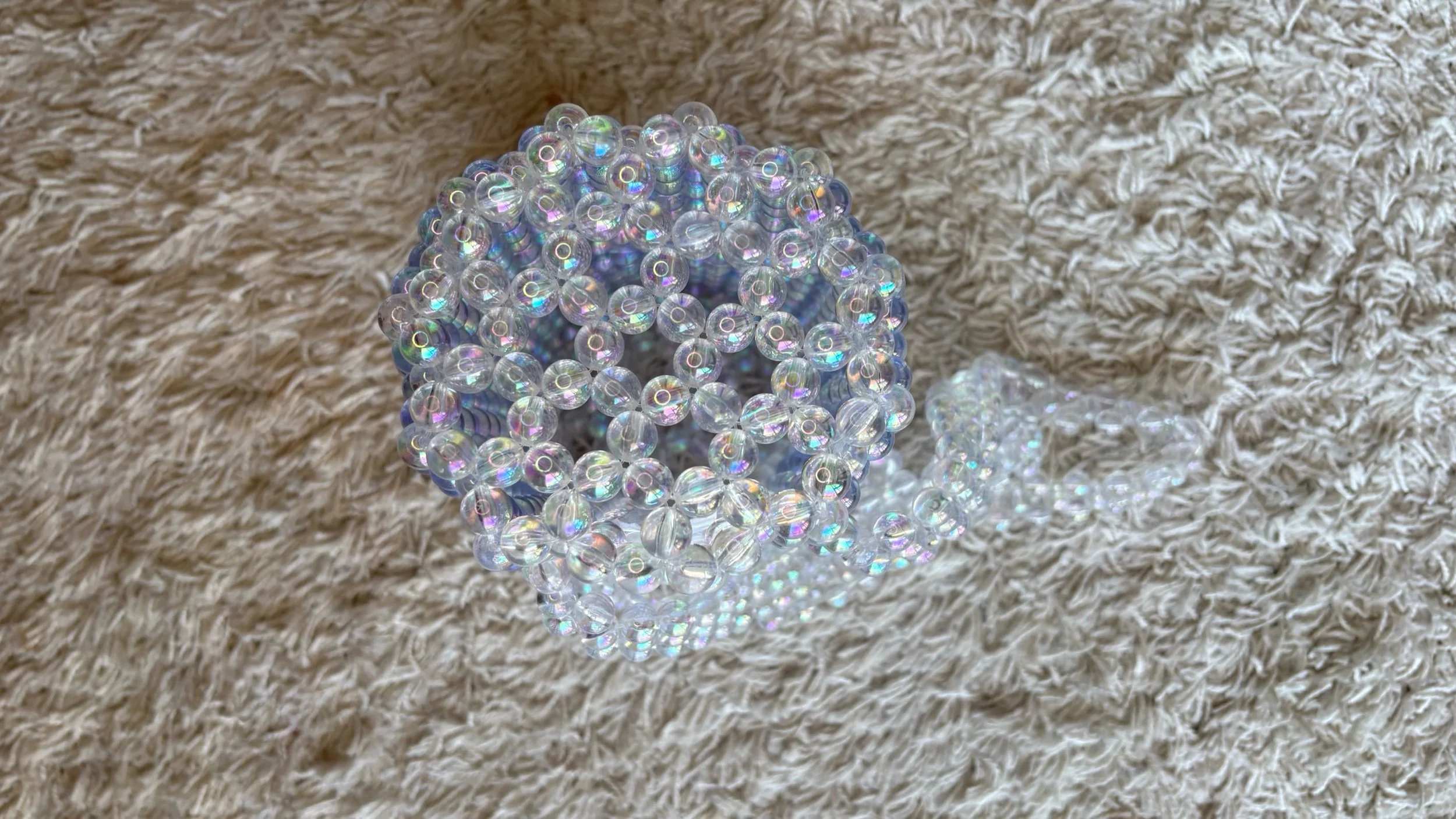 Handmade with care using high-quality resin beads sourced from Brazil, this edition comes in a deep blue and white tone that reflects movement, confidence, and quiet power. Each bead is meticulously selected to create a truly one-of-a-kind look.